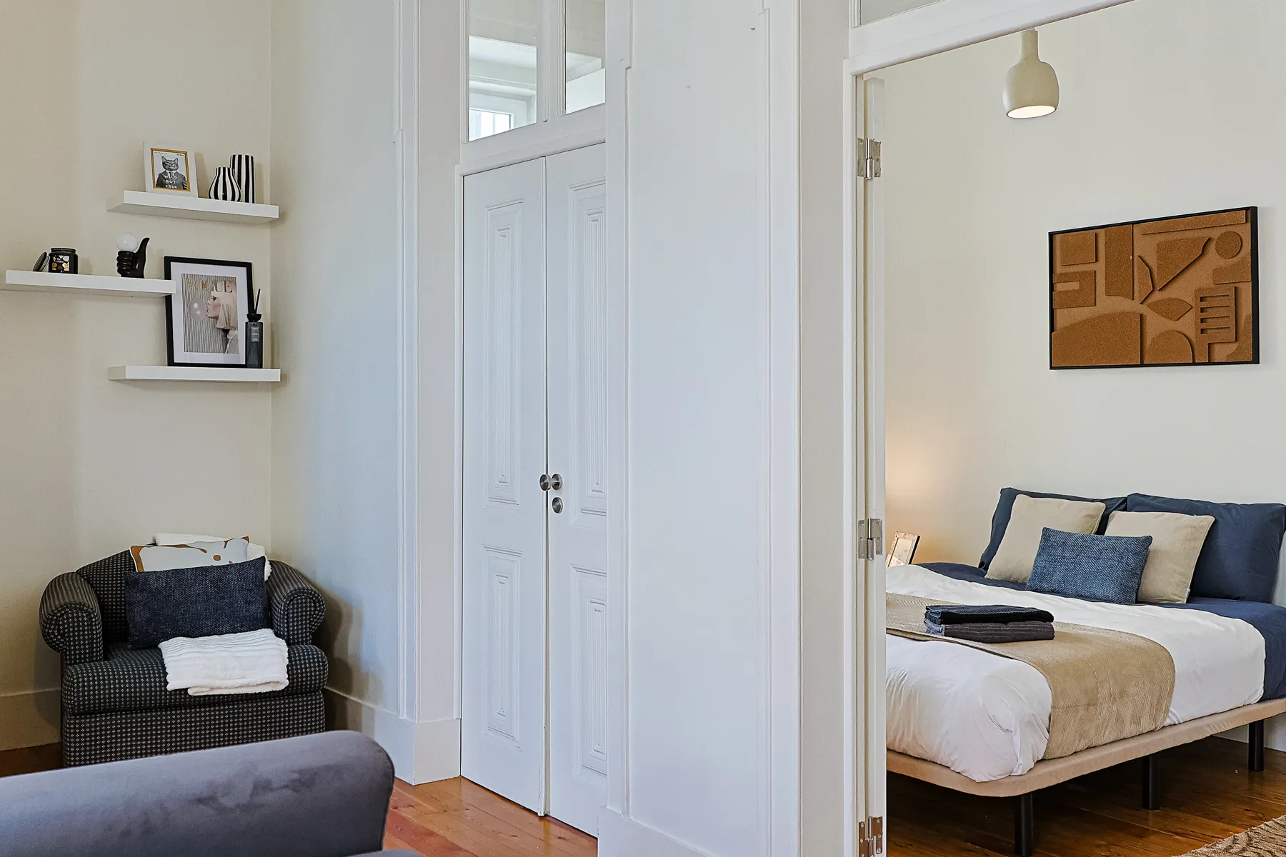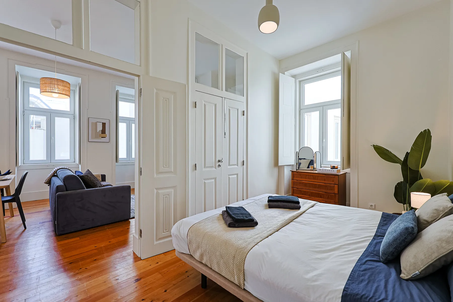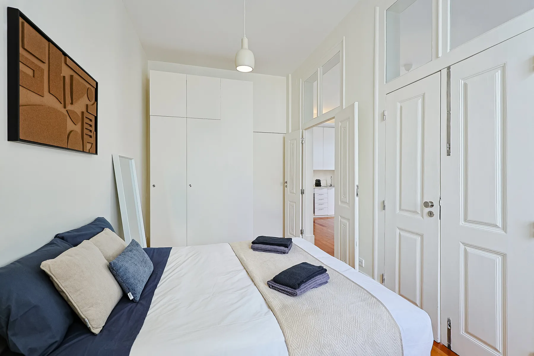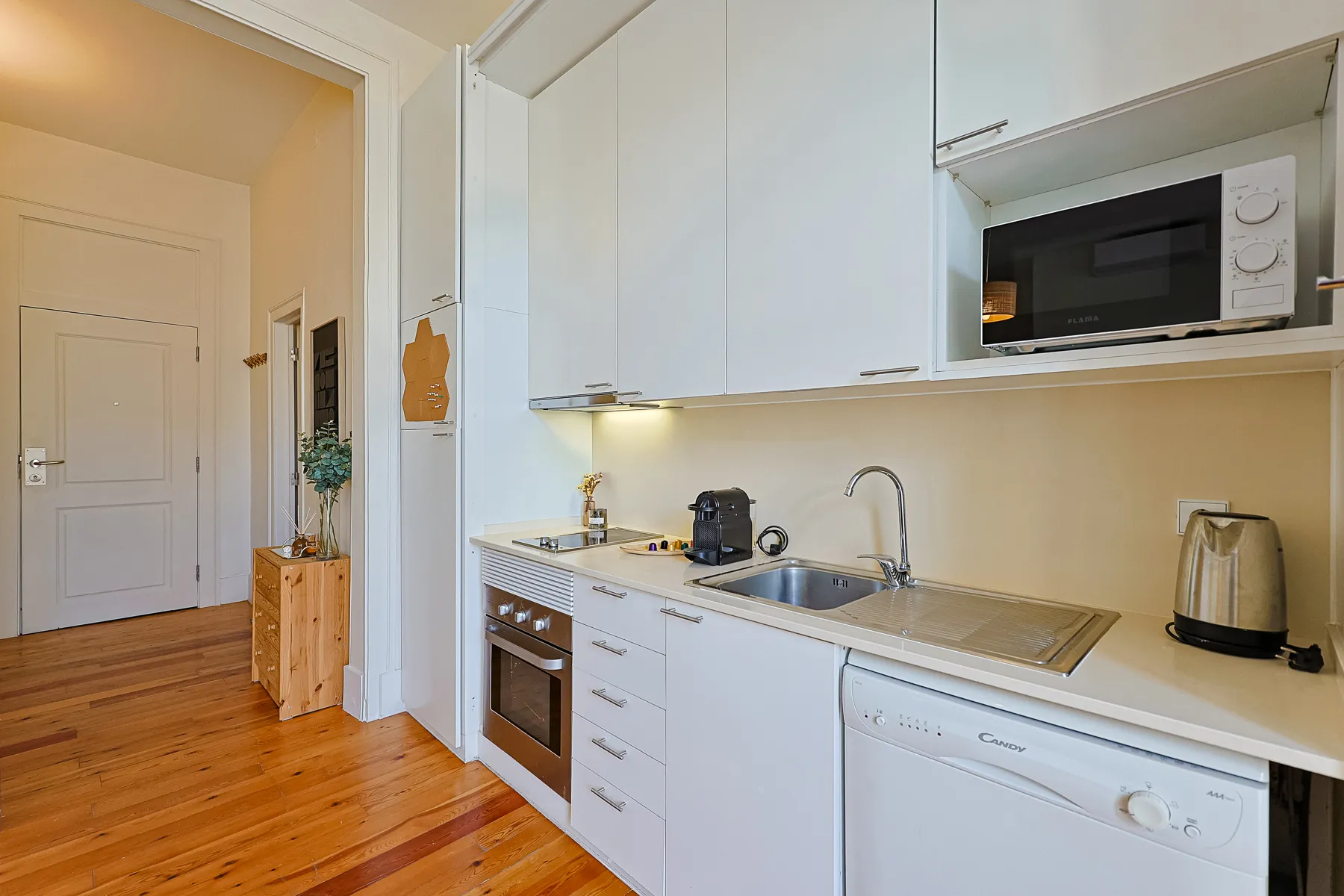Discover this bright and cozy one-bedroom apartment located in the charming Santos district. Fully renovated and furnished, it features a spacious open-plan living room with a modern kitchen, a comfortable double bedroom, and a well-appointed bathroom. The apartment also includes a small balcony, perfect for enjoying some fresh air, and is equipped with air conditioning for year-round comfort. Set in an elegant building with an elevator, featuring classic Lisbon tilework and colorful architectural details, this apartment offers a refined living experience - ideal for couples seeking comfort, style, and a central location.
