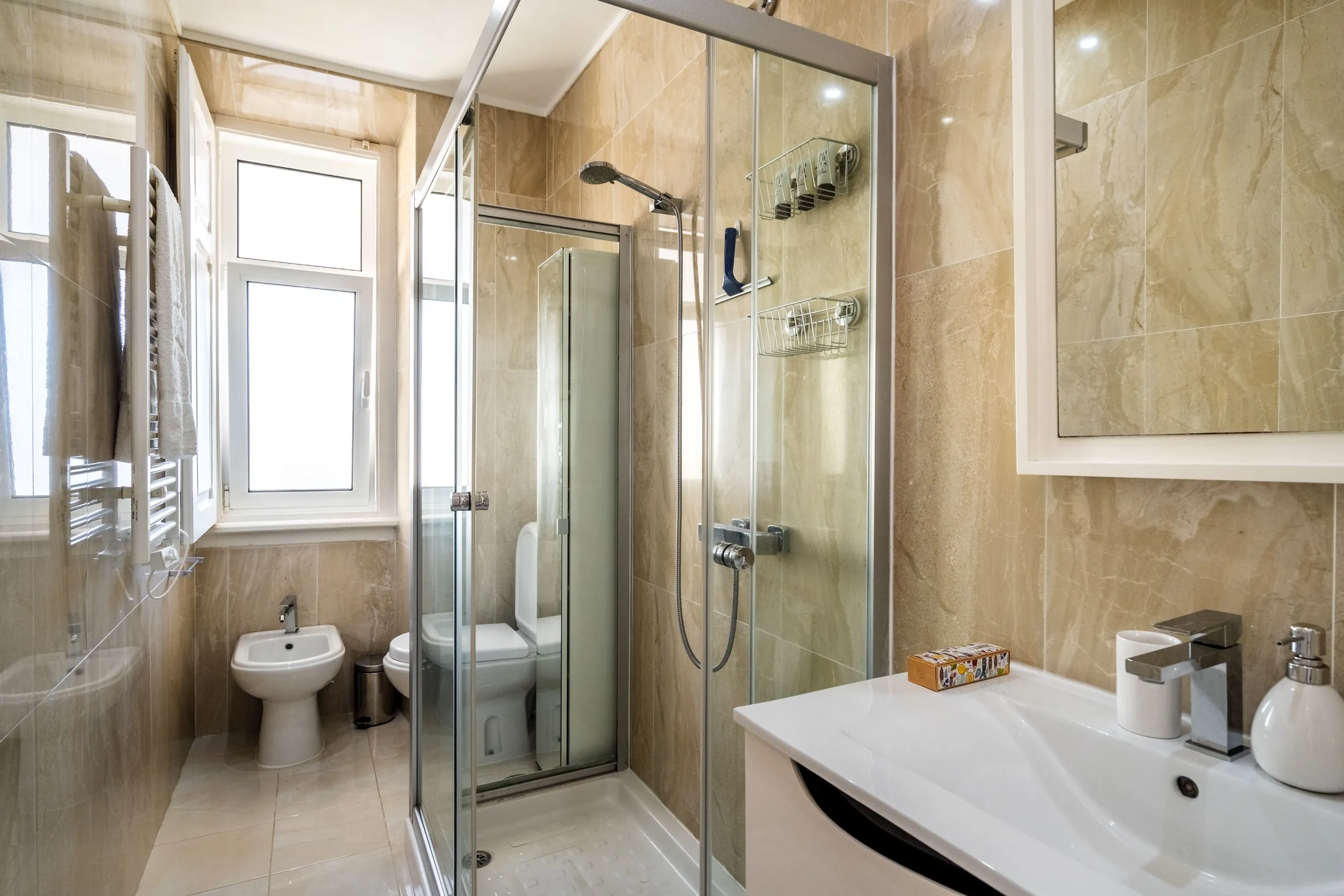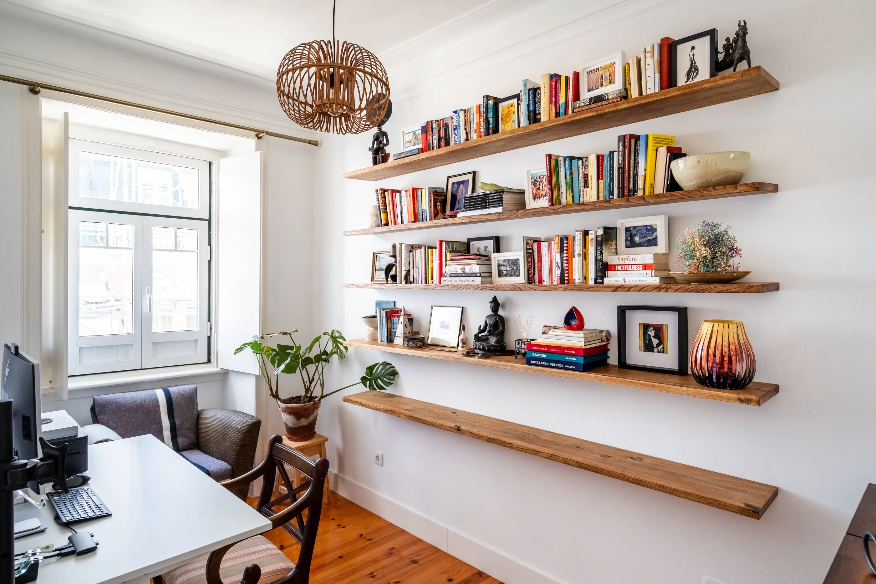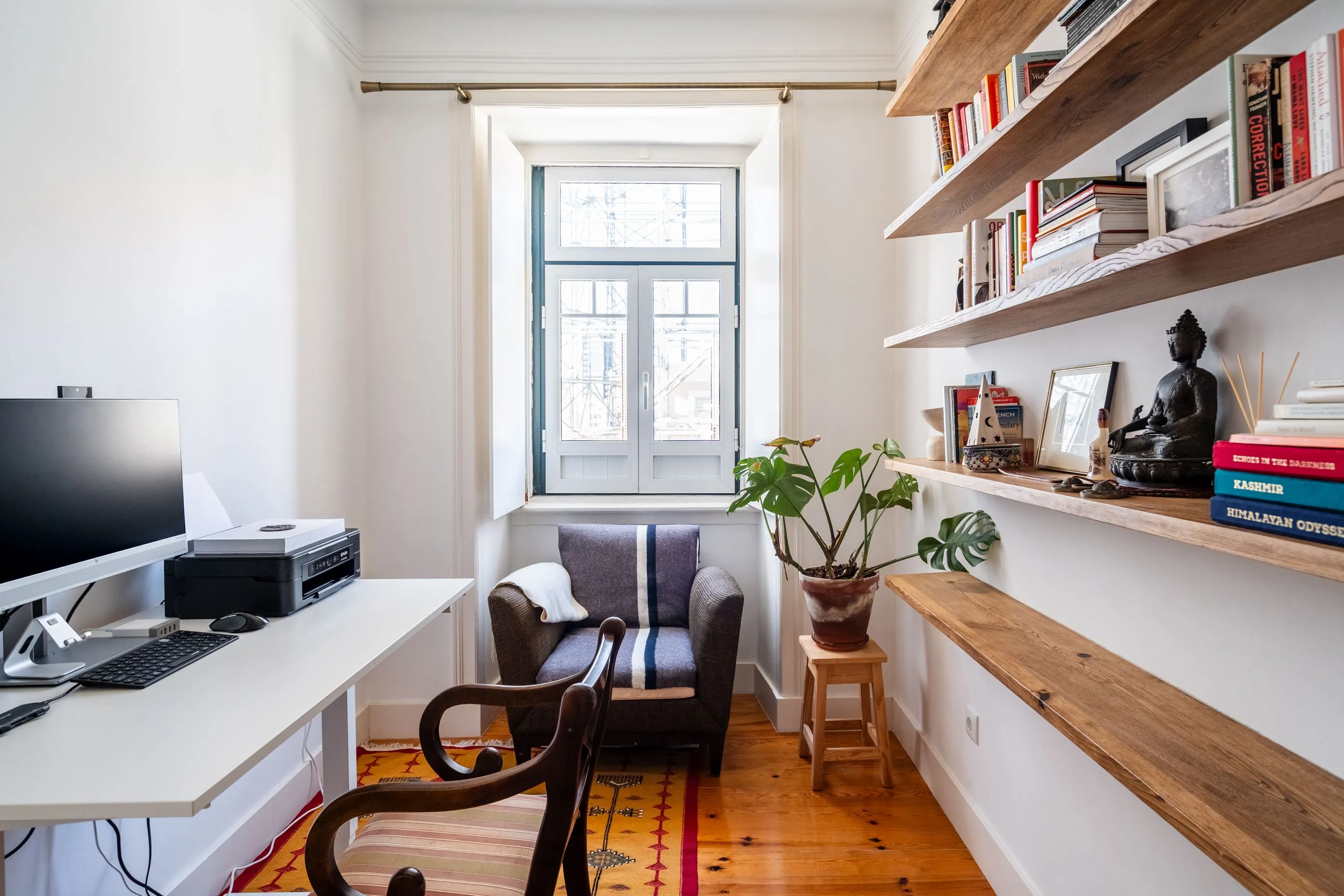 This spacious and beautifully designed two-bedroom apartment with an additional office (T2+1) in Arroios combines modern comfort with timeless character. Featuring two double bedrooms, two bathrooms, a dedicated office space, a separate living room, and a fully equipped kitchen, the layout is both functional and ideal for family living. Bright and welcoming, the apartment stands out for its carefully curated style, blending contemporary elements with classic wooden furniture that adds warmth and elegance. Set within a characteristic Lisbon building with red doors and traditional wooden staircases, it offers a unique living experience full of charm and authenticity. Thoughtfully arranged and full of natural light, this apartment is perfect for families seeking space, comfort, and distinctive design.